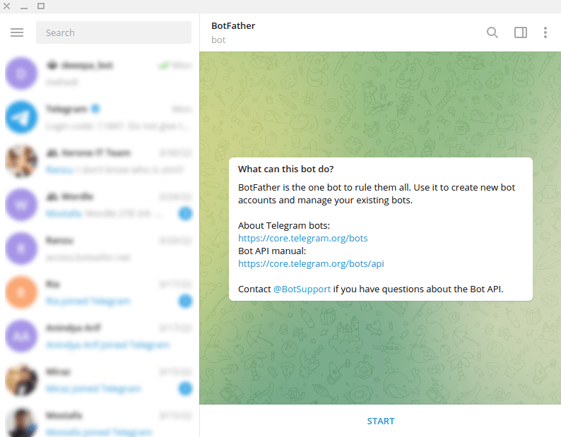 To build a Telegram bot with Connectly.lk, first, open your Telegram App. Then in the search bar of the app, search with the ‘BotFather’ keyword. Then select the verified BotFather account.