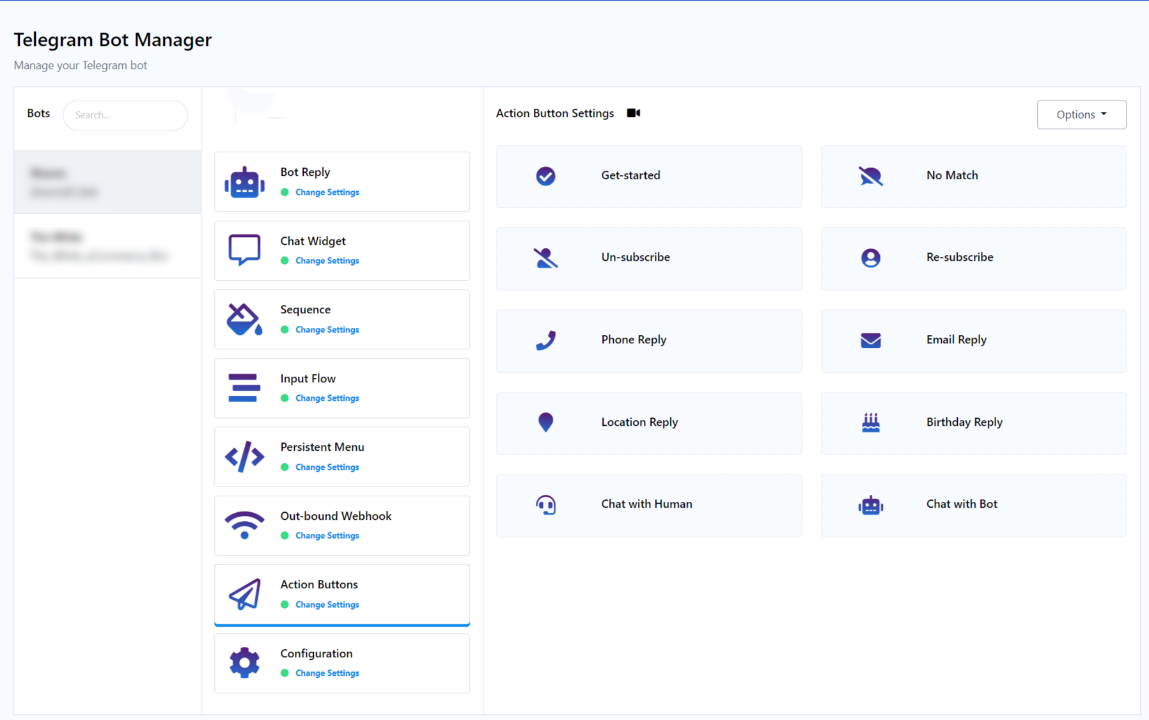 The Action Button section is a collection of customizable elements within the Telegram Bot Manager. These elements enable users to specify particular actions or templates that the bot should carry out when activated. They play a fundamental role in configuring the bot`s behavior and flow, allowing users to incorporate these elements into any desired bot workflow.