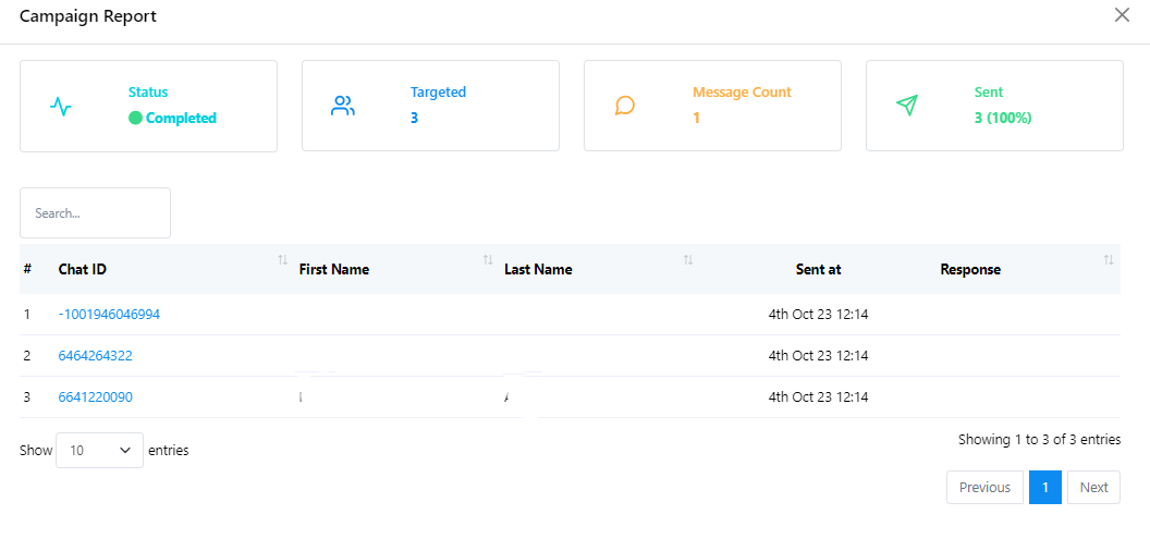 3. You can check Status, Targeted number of subscribers, Message Count and Sent report here.