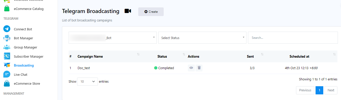 1. Go back to `Telegram Broadcasting` page.