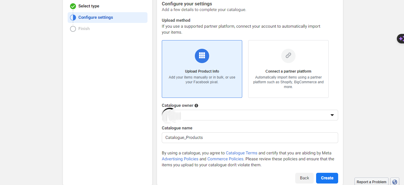 - In the catalog owner section, select your business if you have multiple businesses.